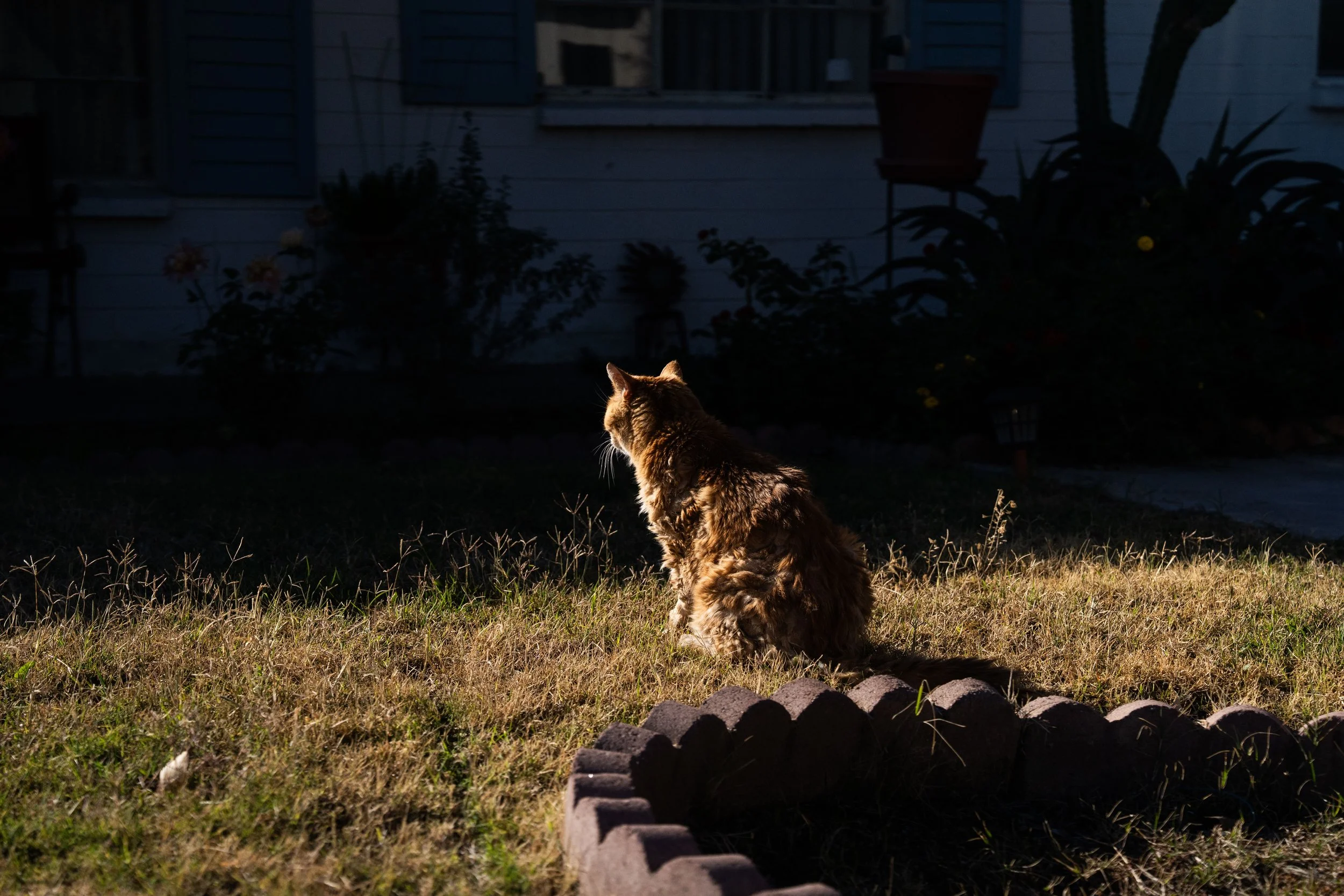 On his last day. He was not doing so well. Could barely stand or walk. But he walked outside on his own and stood in the sunlight. He was looking back at the house. I honestly took this as a sign, that he was ready to go..and wanted to see the house one last time.